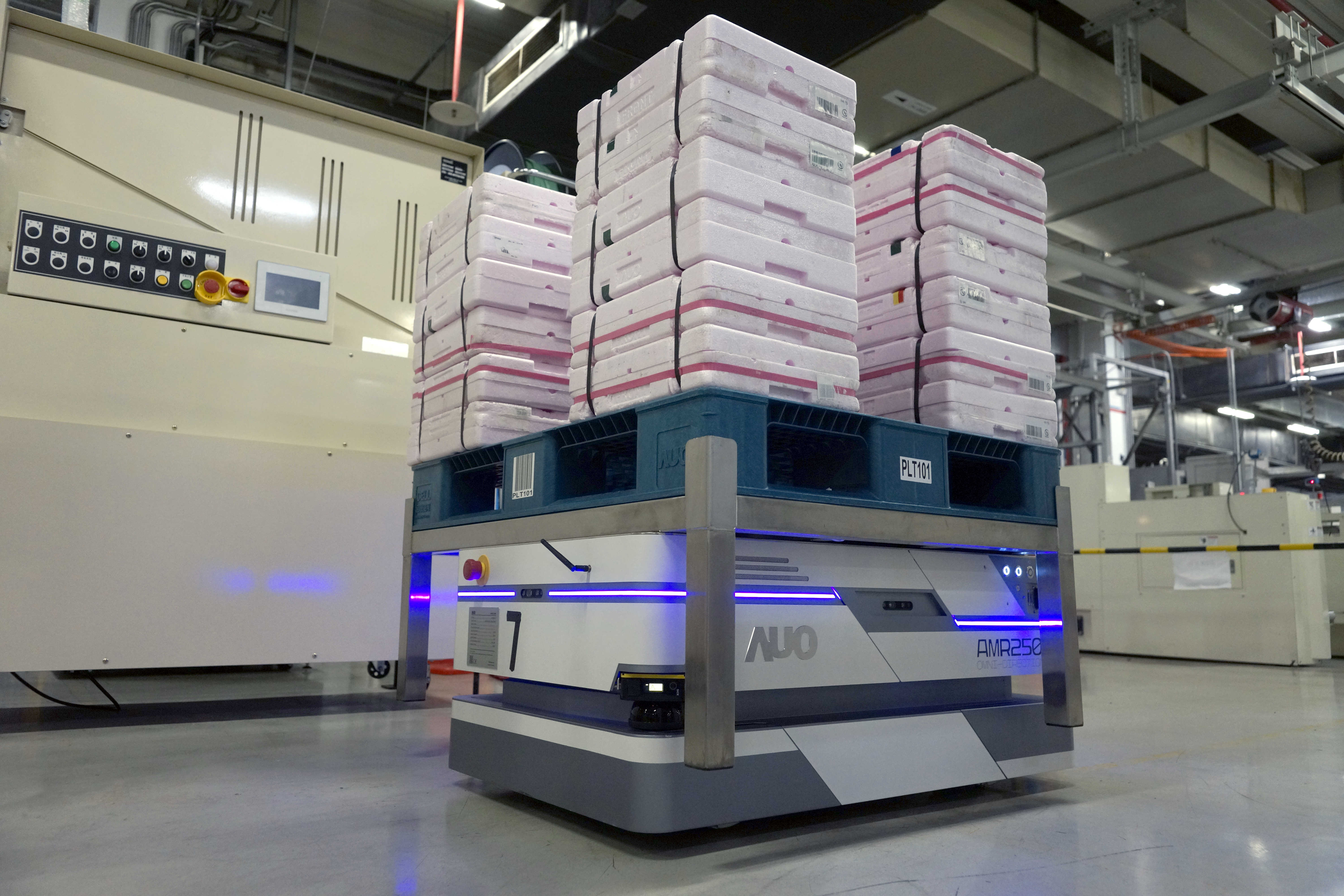 必一·运动(B-Sports)运用数字孪生系统,结合AMR无人搬运车进行派送,达成低库存高效率的智能化仓储物流管理。