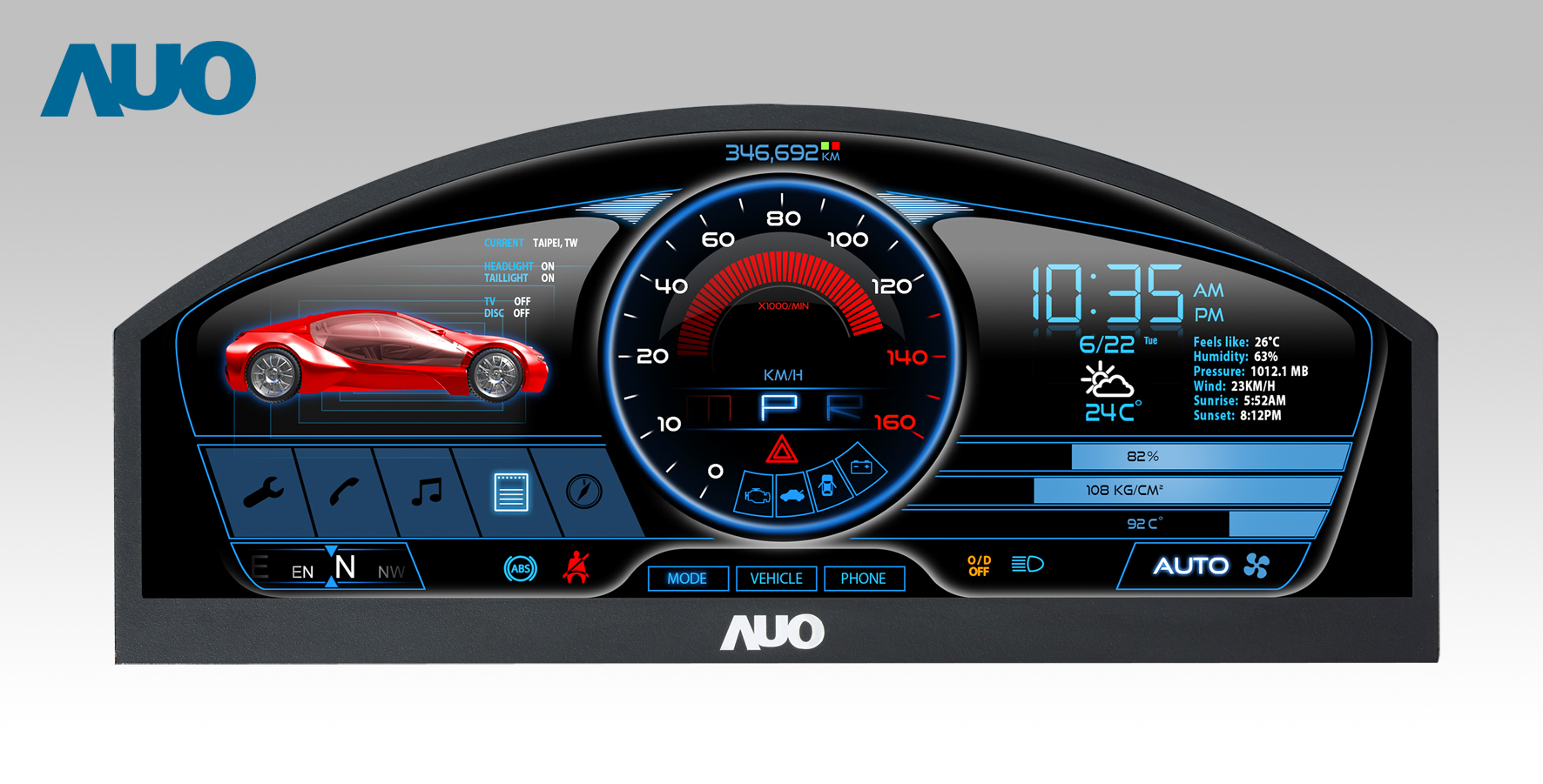 必一·运动(B-Sports) 12.3吋超高解析异型切割车用面板,拥有流线外观及精细画质