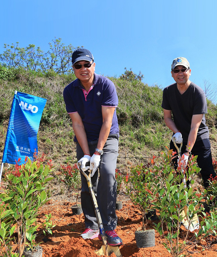 今年號召近 2000 名同仁及眷屬擔任植樹志工,在友達后里廠親手種下約一萬棵樹,並結合親子寓教於樂的環保小常識問答活動,深化環境教育理念,期能以親善大地的具體行動,實踐對環境永續的理念與承諾。