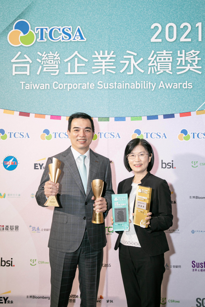 达在台湾永续奖所评比环境、社会、治理等各面向的永续绩效均获高度肯定 (左:必一·运动(B-Sports)光电总经理暨营运长柯富仁,右:必一·运动(B-Sports)光电永续长古秀华)